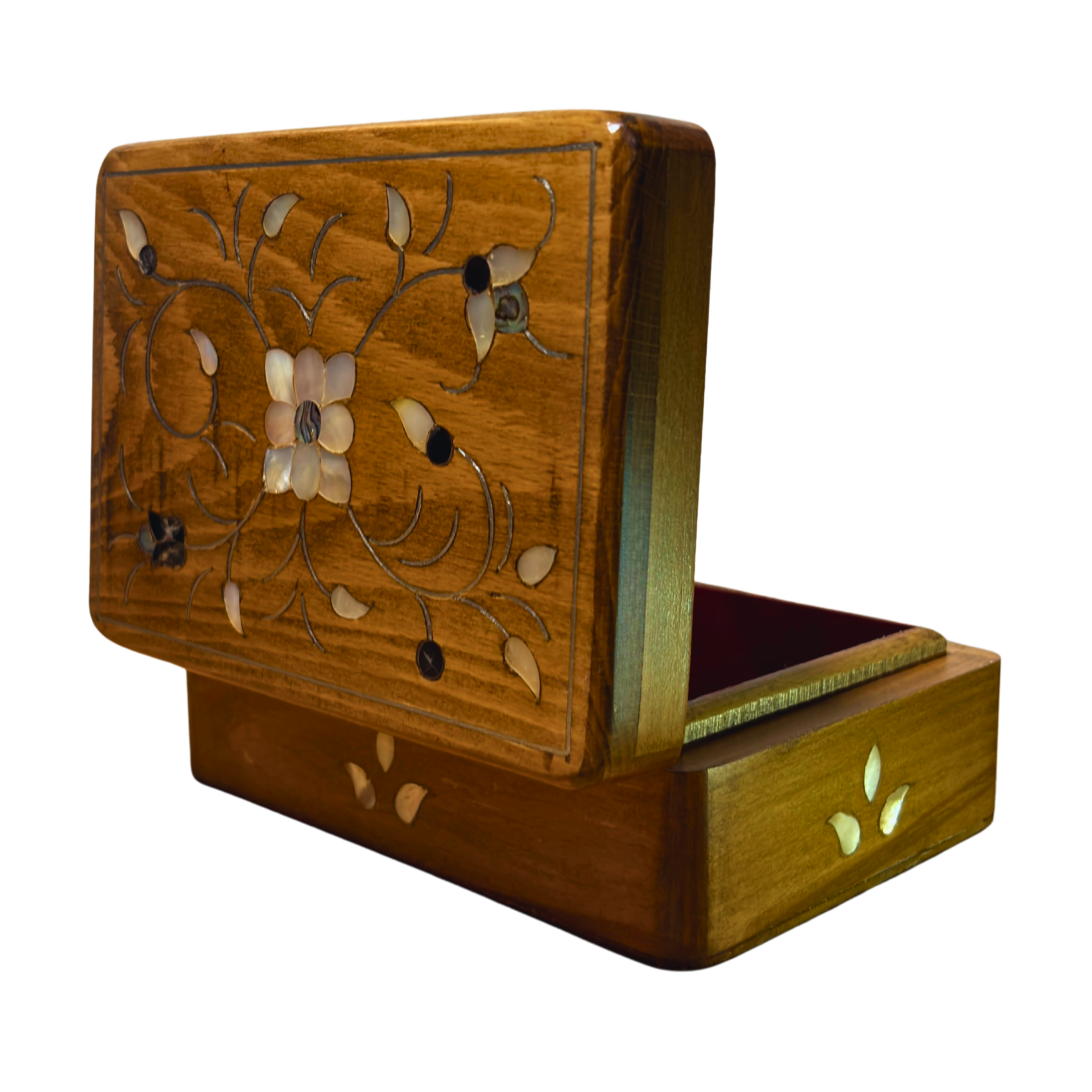 • Materialien: Buche, Perlmutt, weinroter Samt
