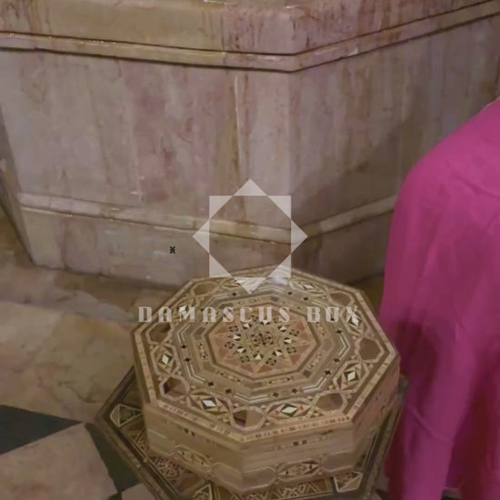Fabriquée à la main à Damas, où l’art du bois vit encore à travers chaque motif.