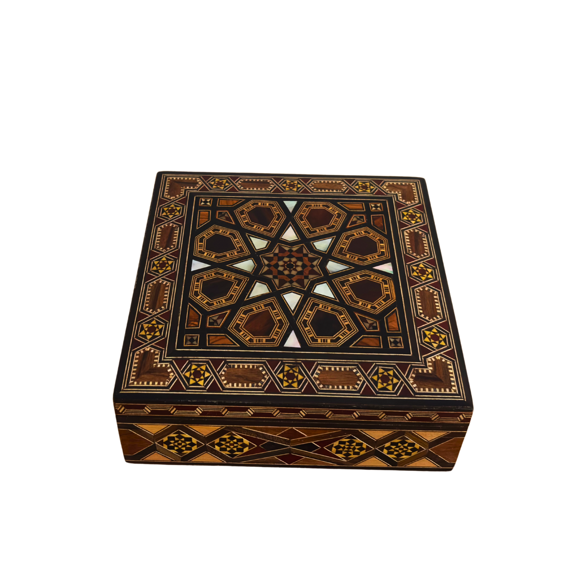 Scatola Mosaico Damaschina Fatta a Mano dal Maestro Gaby Al Dayeh – Madreperla e Velluto