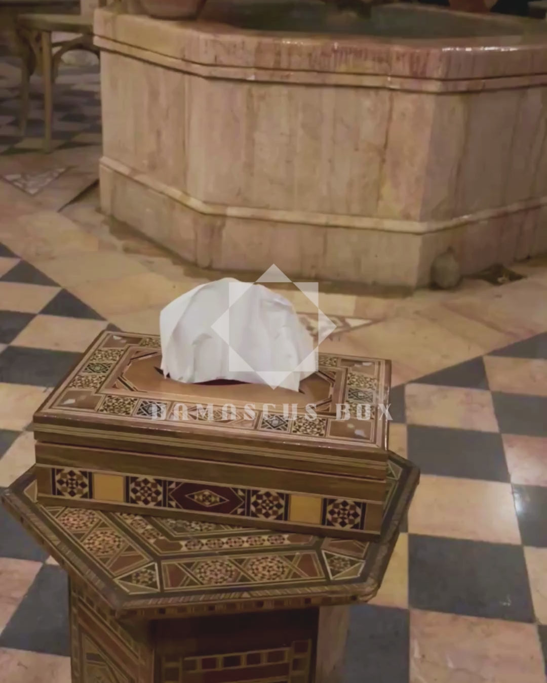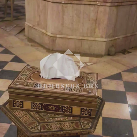 Questo raffinato portafazzoletti artigianale esprime la bellezza senza tempo del mosaico damaschino.