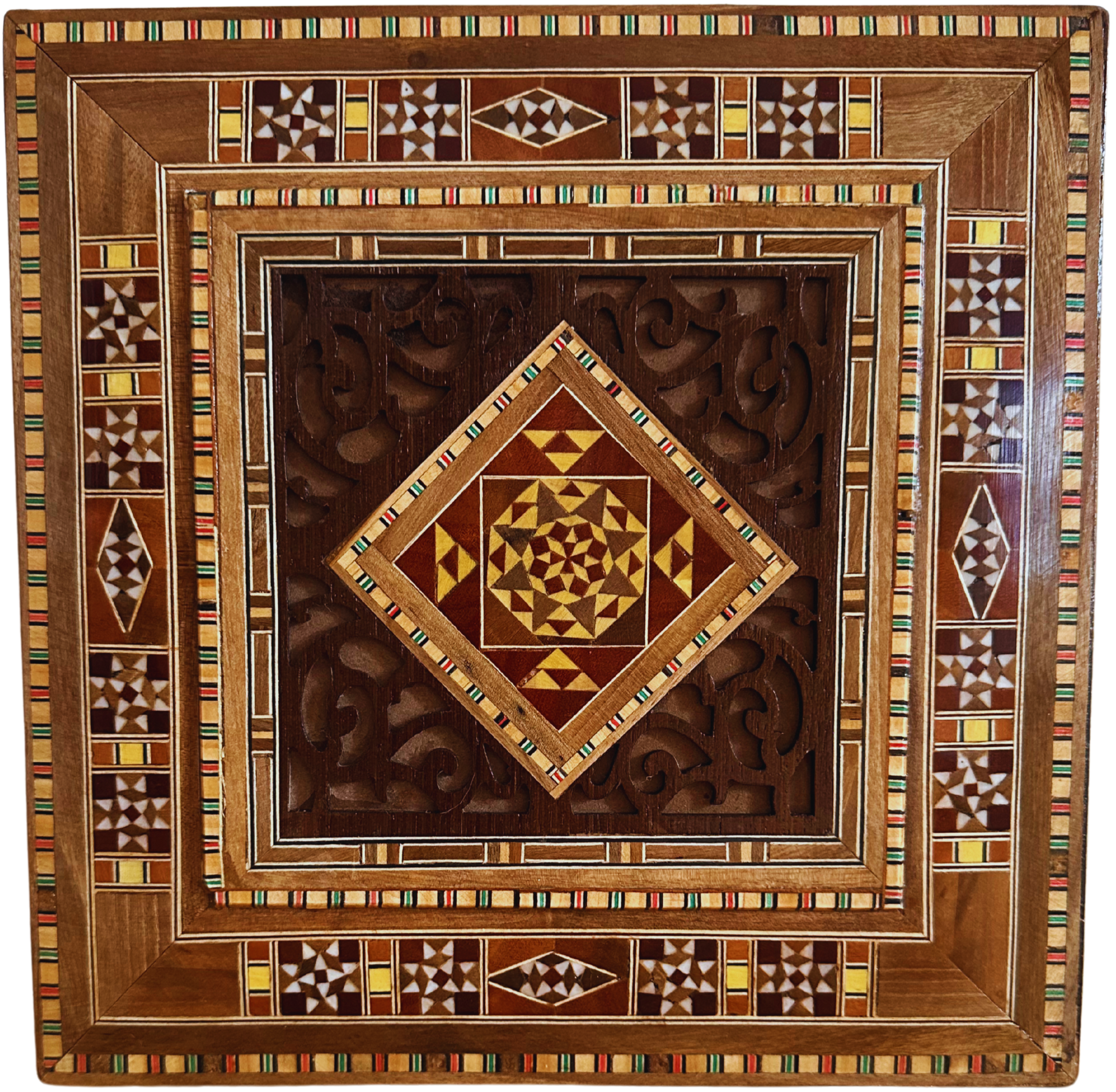 Verlicht elke speciale gelegenheid met deze grote vierkante mozaïekdoos, liefdevol met de hand gemaakt in Damascus van fijn beukenhout. Het charmante ontwerp en vakmanschap maken het tot een mooi en praktisch aandenken voor het bewaren van sieraden, snuisterijen, sigaren of kostbare herinneringen.